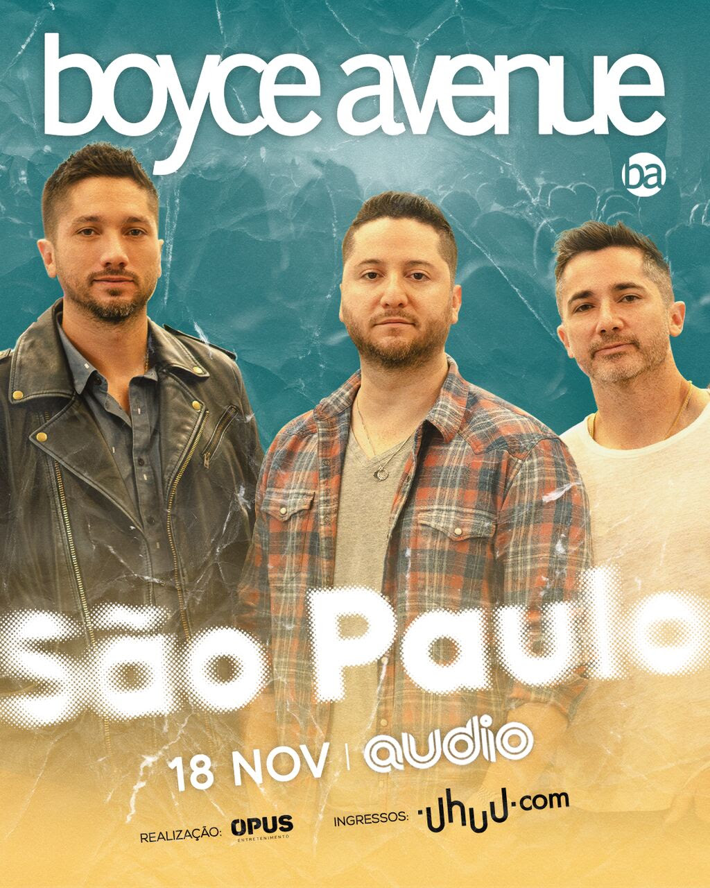 A nova passagem do Boyce Avenue pelo Brasil é uma realização da Opus Entretenimento, uma das principais produtoras de shows e entretenimento ao vivo da América Latina. A tour marca o reencontro do trio com o público brasileiro, após importante série de apresentações sold out na Europa, Ásia e América do Norte, além de uma intensa agenda de lançamentos.